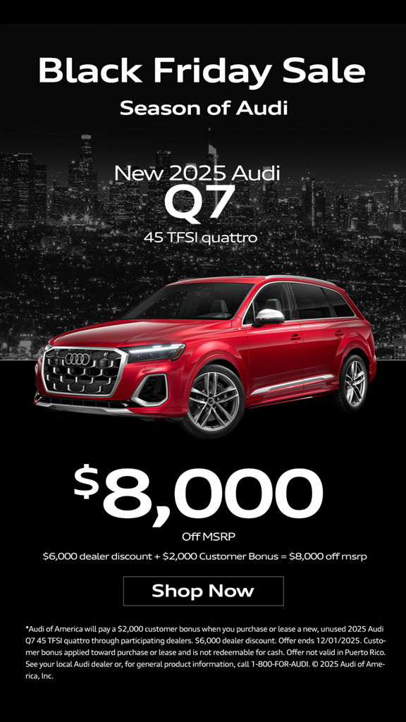 Audi Downtown LA wants nothing more than to see you driving away from our lot with a smile on your face, and we know that saving you money will do just that. We have a plethora of new Audi vehicle specials, used specials, certified pre-owned specials, and service specials. Whether you're looking to invest in a more exciting vehicle or need service on your current Audi model, you'll get to look forward to significant savings when you visit our Audi dealership. Plus, we regularly update these deals and offers with newer, better savings as they become available, so be sure to check back often to see all the ways you could save.