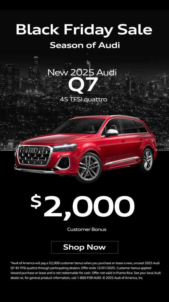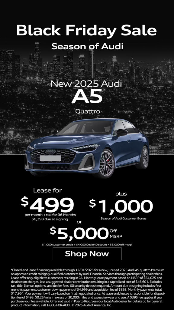 Audi Downtown LA wants nothing more than to see you driving away from our lot with a smile on your face, and we know that saving you money will do just that. We have a plethora of new Audi vehicle specials, used specials, certified pre-owned specials, and service specials. Whether you're looking to invest in a more exciting vehicle or need service on your current Audi model, you'll get to look forward to significant savings when you visit our Audi dealership. Plus, we regularly update these deals and offers with newer, better savings as they become available, so be sure to check back often to see all the ways you could save.