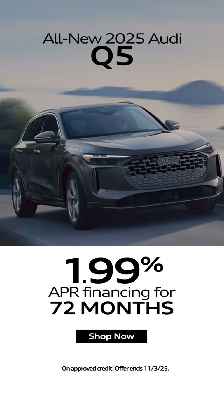 Once you decide on the new Audi car or Audi SUV you'd like to invest in, the rest of the buying or leasing process will be a breeze with Audi financial services. Whether you're looking for a car lease or a car loan, you'll get to work with the dedicated experts in our Audi Finance Center. Here, we'll help you get squared away with finance or lease options that fit your budget and have you driving away in your ideal vehicle sooner rather than later. You can even get a jump start on the financing process by filling out the digital finance application right here on our website.